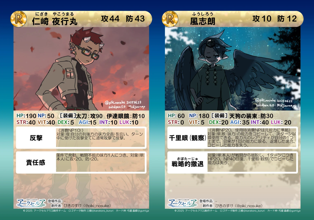 創作キャラのTCGシステム「アークセルア」にて、ぴきのすけキャラのカードです。